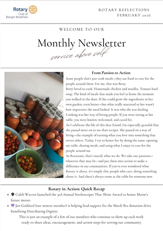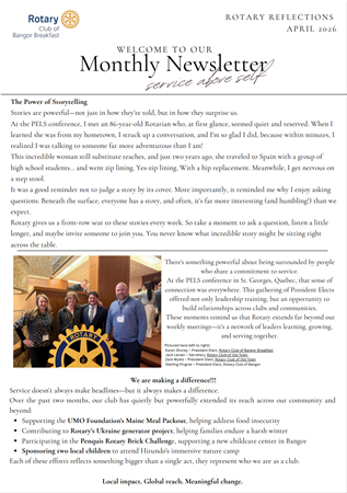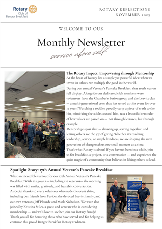 Founded in 1989, the Rotary Club of Bangor Breakfast is committed to community service and support of local, regional and international projects, as well as fellowship and professional growth and development.
